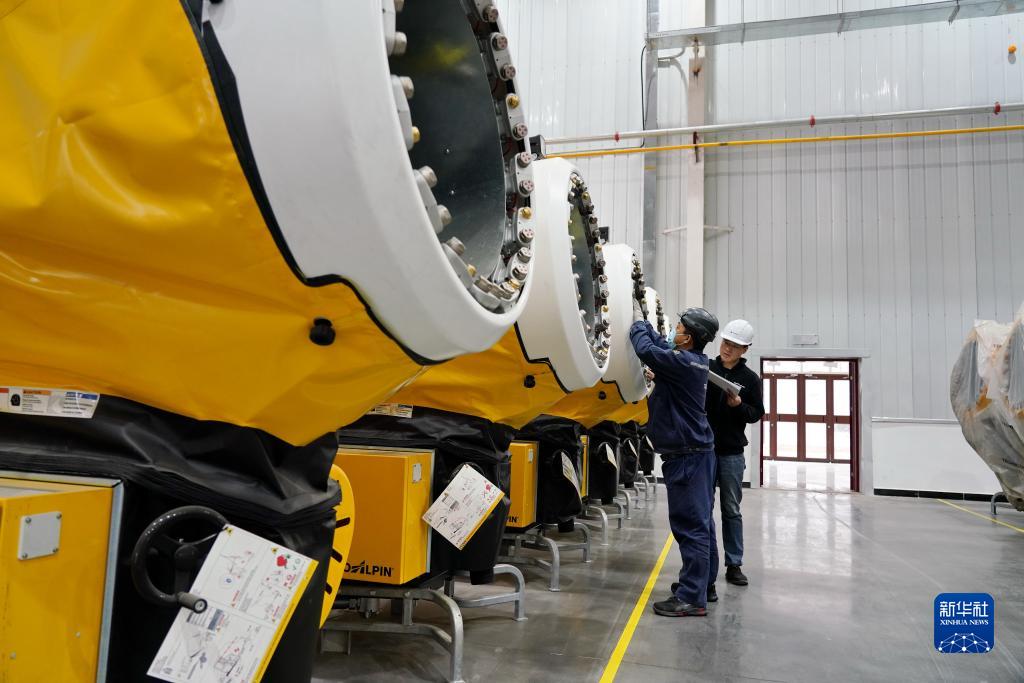 2021年5月20日,天冰冰雪設備張家口有限公司工人在廠房內(nèi)保養(yǎng)檢修造雪設備。新華社記者牟宇攝