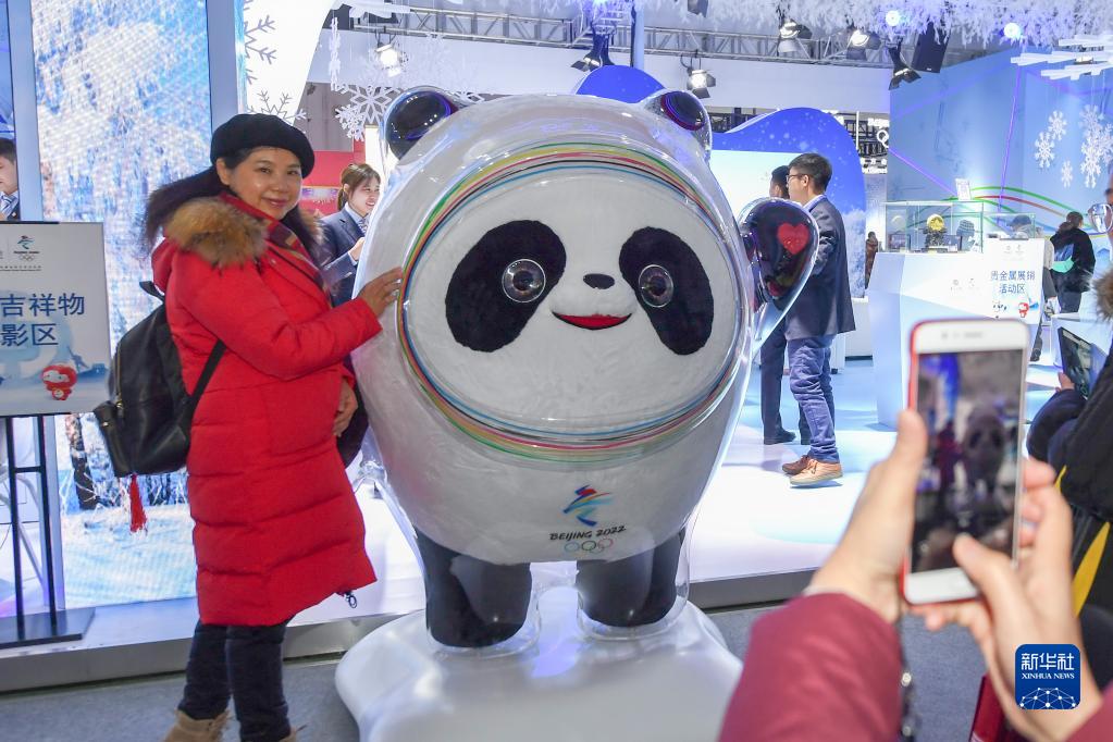 2019年12月13日,參觀者在第四屆吉林雪博會展會現(xiàn)場與北京2022年冬奧會吉祥物“冰墩墩”合影。新華社記者張楠攝