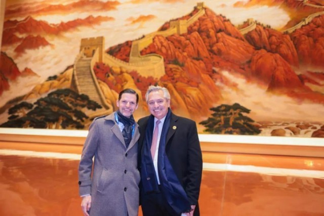 2月4日,阿根廷總統費爾南德斯(右)與阿根廷駐華大使牛望道在中國共產黨歷史展覽館內合影。圖片由阿根廷駐華大使館提供