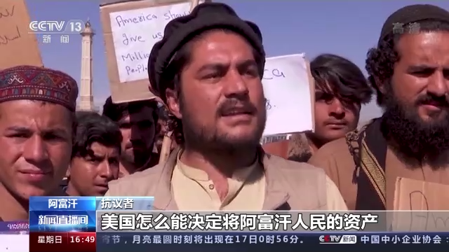 阿富汗抗議者:日前,美國總統拜登決定將部分被凍結的阿富汗資產分配給“9·11”事件受害者,因此我們在這里抗議。我們要問國際社會,美國怎么能決定將阿富汗人民的資產用于(賠償)“9·11”事件受害者?抗議將出現在阿富汗每個省份,作為一名阿富汗青年,我呼吁阿富汗人民站出來抗議,捍衛自己的權利。