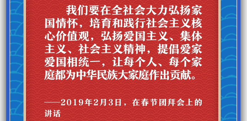他提醒大家,把實(shí)現(xiàn)家庭夢融入民族夢之中,心往一處想,勁往一處使。