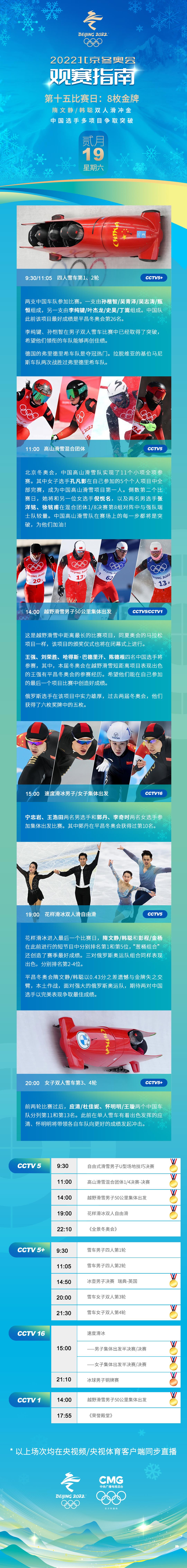 一圖速覽2月19日北京冬奧會賽程日歷↓