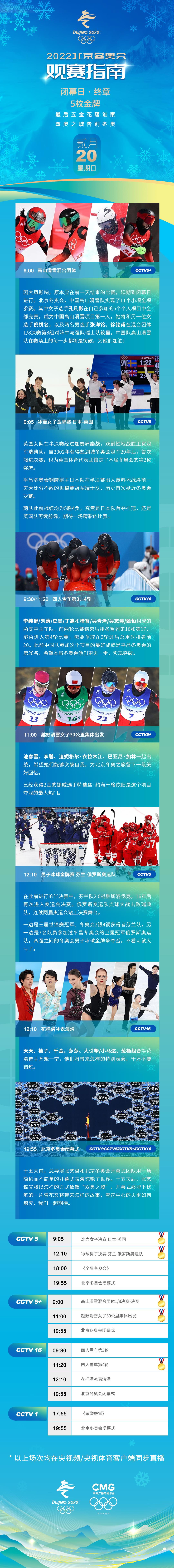 2月20日,2022年北京冬奧會最后一個比賽日,將產生5枚金牌。閉幕日最后五金花落誰家?