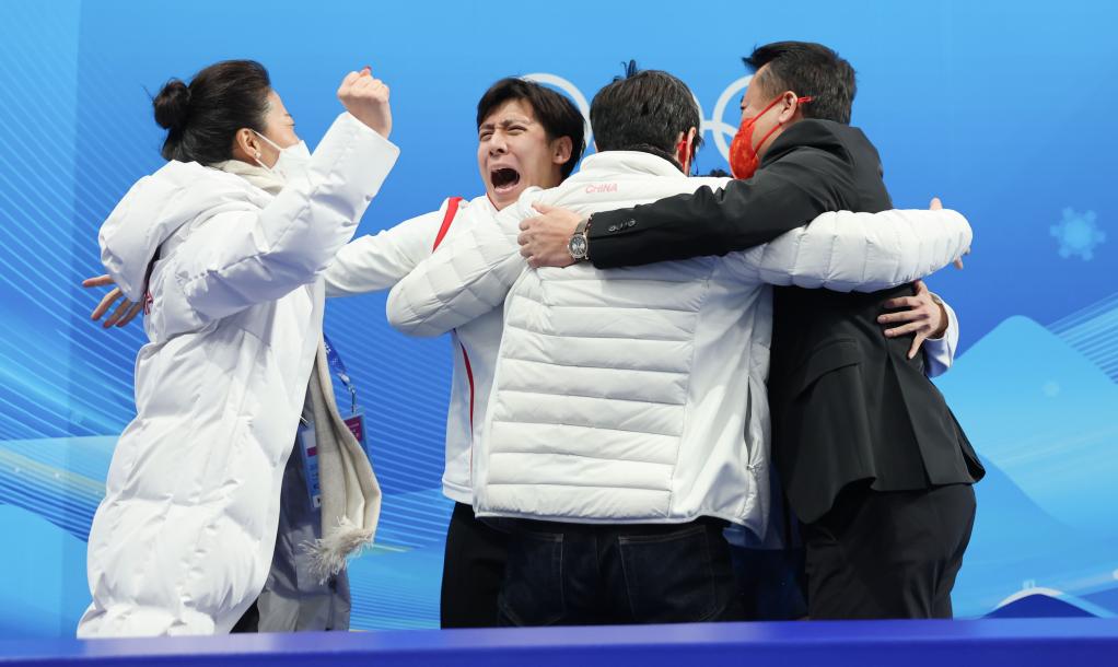 當日,北京2022年冬奧會花樣滑冰雙人滑自由滑比賽在首都體育館舉行,中國選手隋文靜/韓聰奪得雙人滑冠軍。