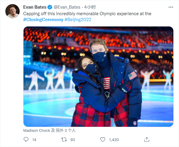 譯文:(我們)在閉幕式上結束了這難以置信和難忘的奧運經歷。(圖片來源:推特)
