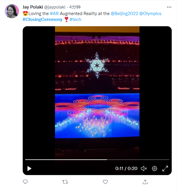 譯文:喜歡(北京冬奧會閉幕式上的)增強現實技術。(圖片來源:推特)