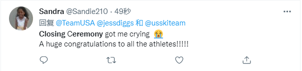 譯文:閉幕式把我看哭了,給所有運動員們大大的祝賀。▓D片來源:推特)