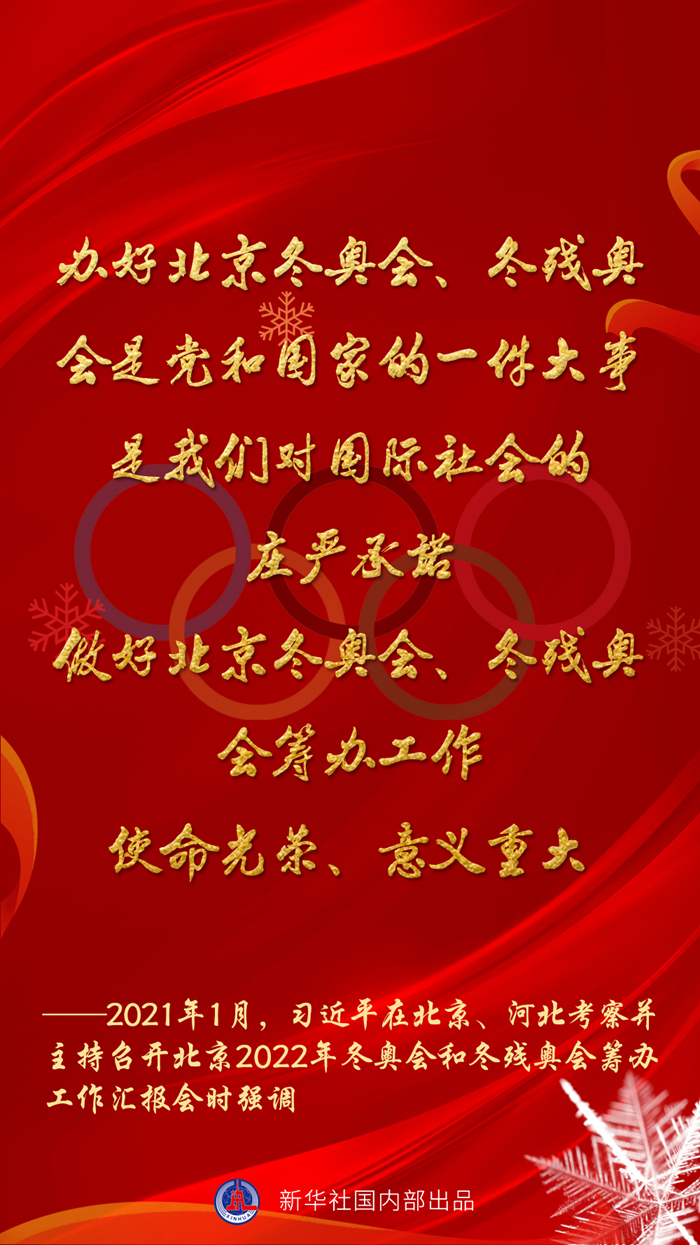 “辦好北京冬奧會、冬殘奧會,是中國對國際社會的莊嚴承諾!绷暯娇倳浾f。