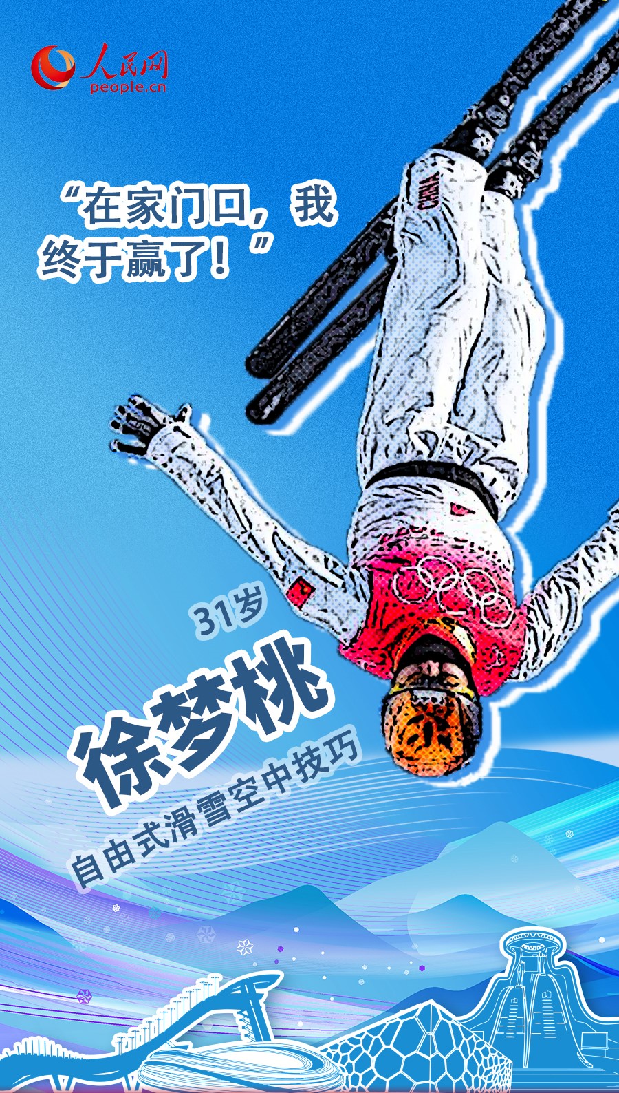 2月14日,中國老將徐夢桃奪得北京冬奧會自由式滑雪空中技巧決賽冠軍。這是中國女子空中技巧隊獲得的首枚奧運金牌,也是徐夢桃31年人生中的第一枚奧運金牌。