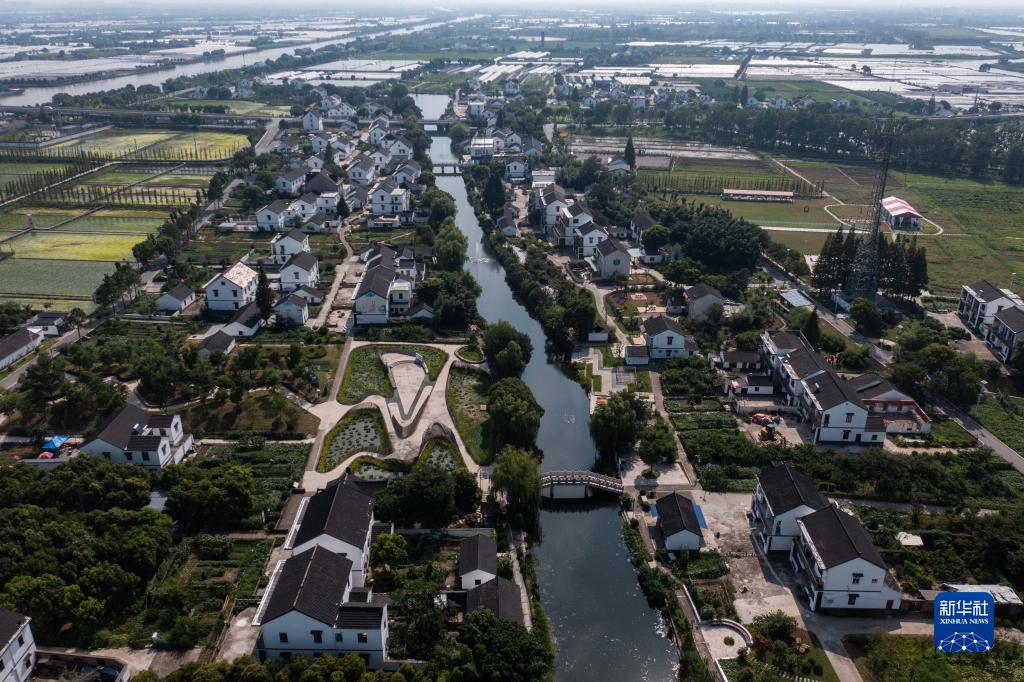 空中俯瞰浙江省嘉興市嘉善縣姚莊鎮橫港村(2021年7月12日攝,無人機照片)。近年來,嘉善縣建設高標準農田14.8萬畝;同時建設產業幫扶聯合體、農業社會化服務綜合體等,不斷拓寬農民增收致富渠道,走出了一條城鄉深度融合推動共同富裕的實踐路子。新華社記者 徐昱 攝