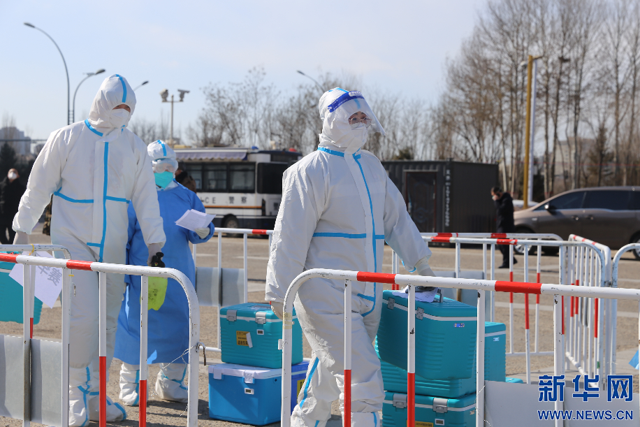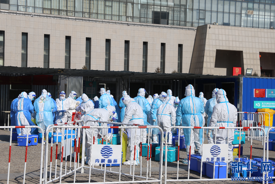 2月15日,新冠肺炎疫情突襲呼和浩特,籍東斌和同事們響應號召成為志愿者,負責核酸檢測樣本轉運工作。新華網 李倩攝
