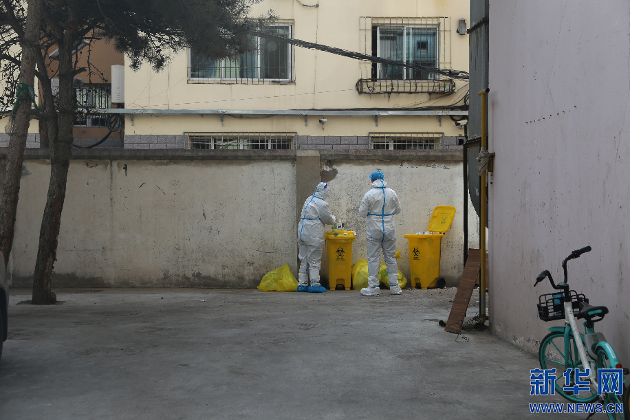 上午的樣本轉運工作告一段落,籍東斌和工作人員在指定地點脫掉防護服,進行全身消殺。新華網 李倩攝