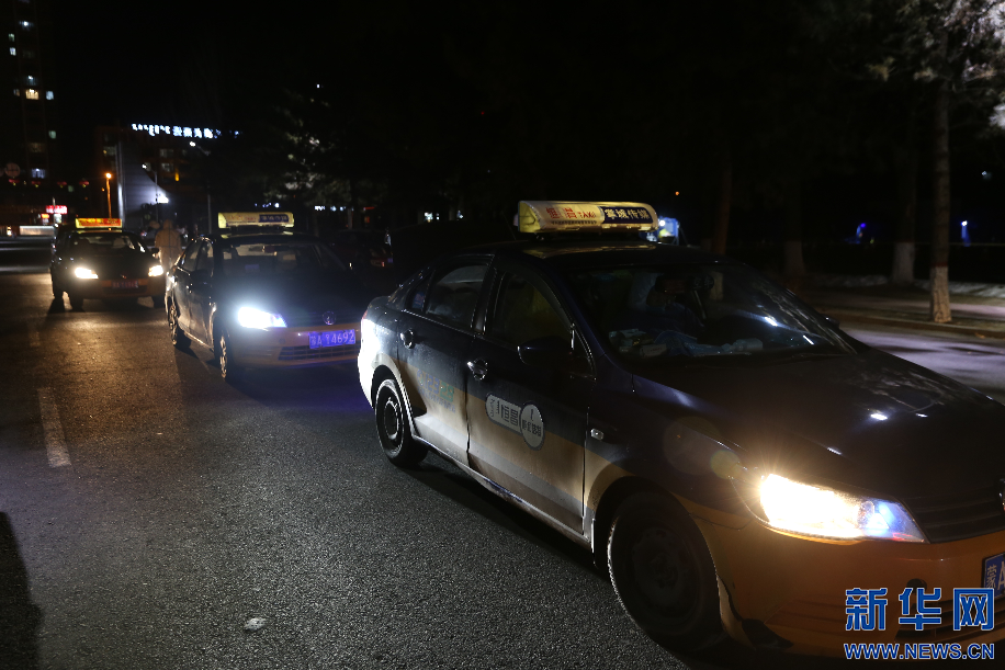 2月20日晚9點,前往指定地點運送樣本的出租車排起了長隊,完成這一次運送,司機們當天的任務就完成了。新華網 李倩攝