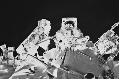 神舟十三號航天員首次出艙活動。新華社發