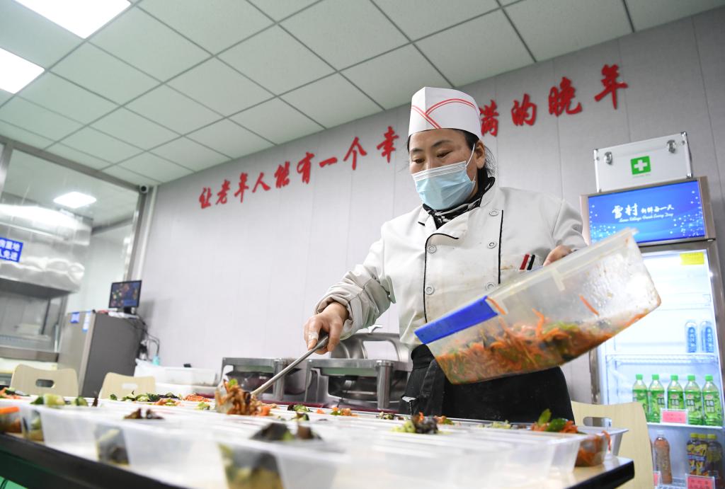 河北省承德市濱河社區老年食堂工作人員在為老人配餐(2021年12月16日)。新華社記者 朱旭東攝