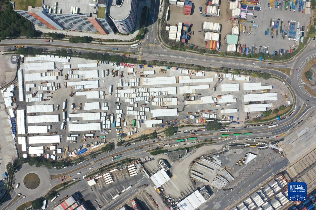 這是2月26日拍攝的香港青衣方艙醫院項目工地(無人機照片)。新華社發