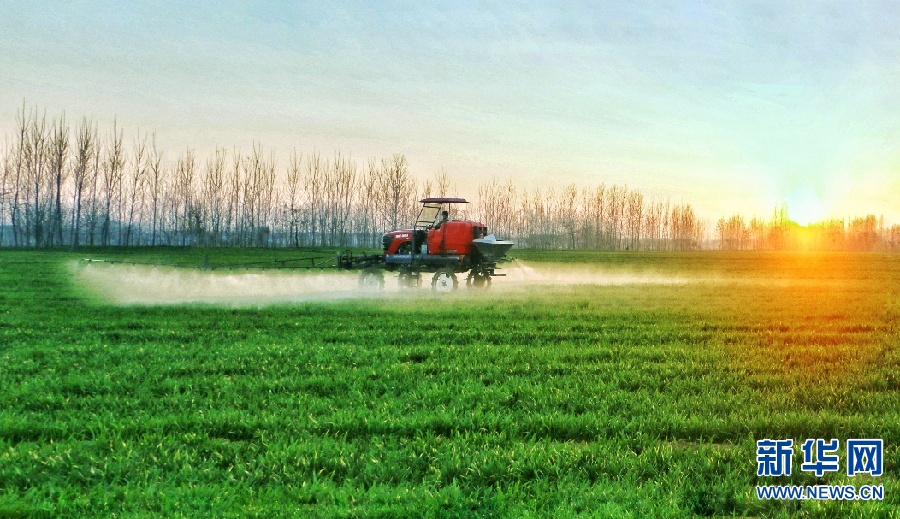 近日,隨著氣溫回升,河南省柘城縣農(nóng)民搶抓農(nóng)時,積極進行春季麥田管理,為夏糧豐產(chǎn)豐收打基礎(chǔ)。新華網(wǎng)發(fā)(張子斌 攝)