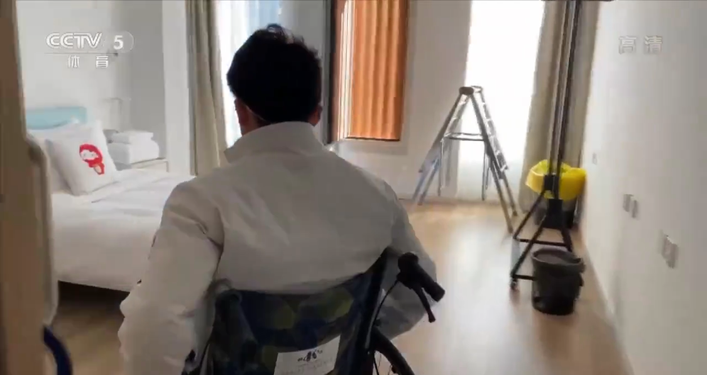 走廊和室內(nèi)地面使用了防滑材料,房間內(nèi)部空間便于輪椅回轉(zhuǎn)和通行;幾乎所有的門都是單臂可以進(jìn)行操作的推拉門,衛(wèi)生間配備了無障礙衛(wèi)生和淋浴設(shè)施,有安全抓桿、淋浴凳、高低位掛鉤、低位的淋浴花灑、置物架等生活設(shè)施;臥室內(nèi),床腳相對于冬奧會期間降低了10公分,便于坐輪椅的運動員上下床;床頭的抱枕一面飾有北京冬殘奧會會徽“飛躍”,另一面是北京冬殘奧會吉祥物“雪容融”,這也是送給運動員的一份禮物。