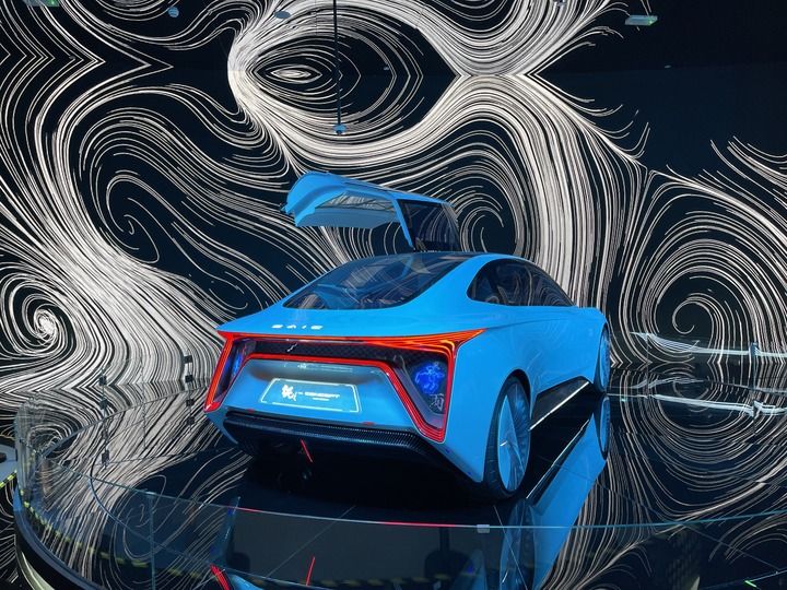 這是2021年10月1日拍攝的世博會(huì)中國(guó)館未來(lái)概念汽車(chē)板塊的展覽。新華社記者 蘇小坡 攝