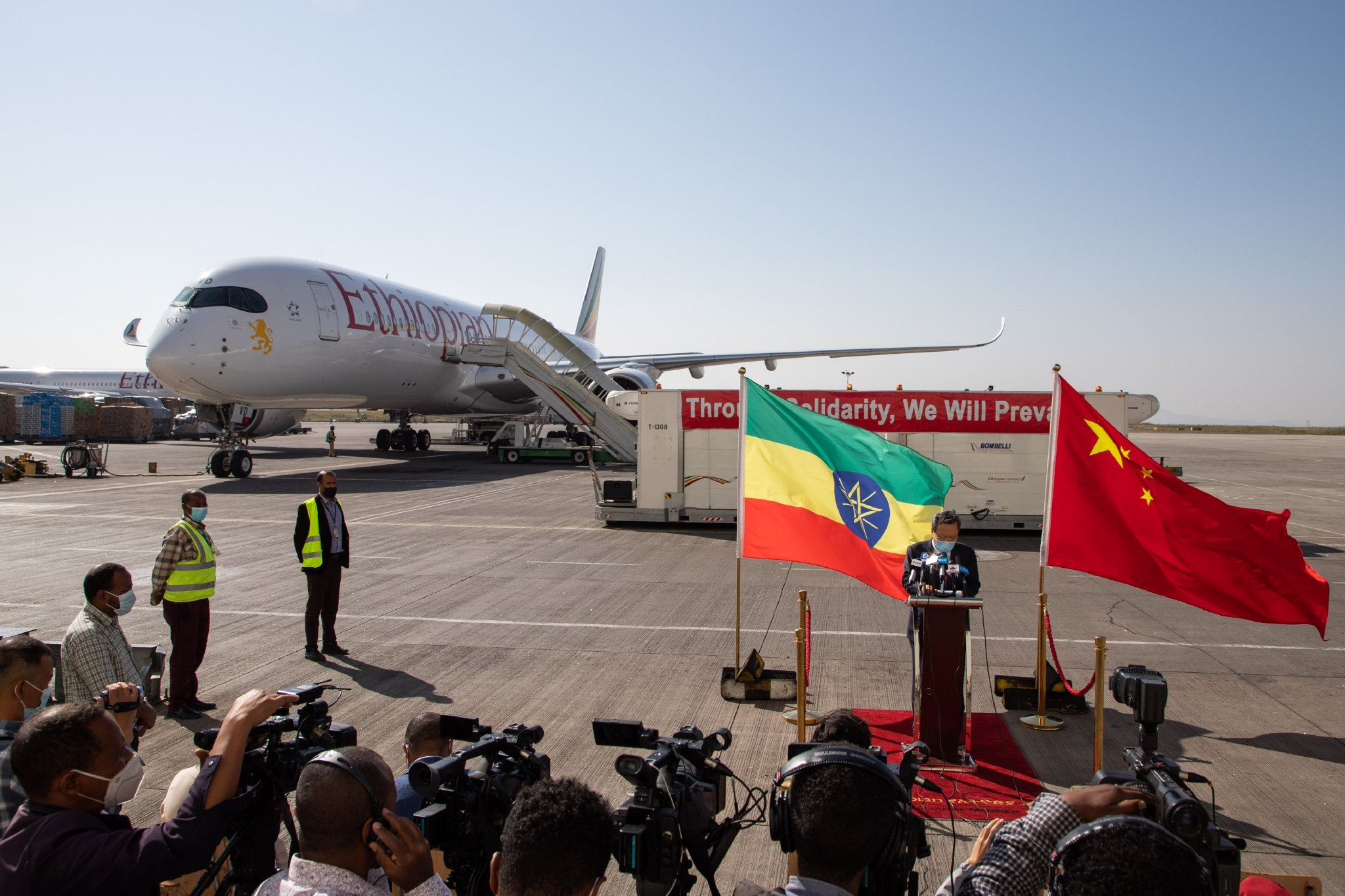 2021年10月24日,新一批中國政府援助埃塞的新冠疫苗運抵埃塞俄比亞首都亞的斯亞貝巴。(新華社發,邁克爾·特韋爾德攝)