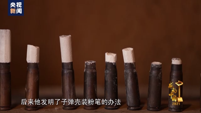朱彥夫用兩支殘臂夾著粉筆,總是寫了斷,斷了寫,后來他發(fā)明了子彈殼裝粉筆的辦法。