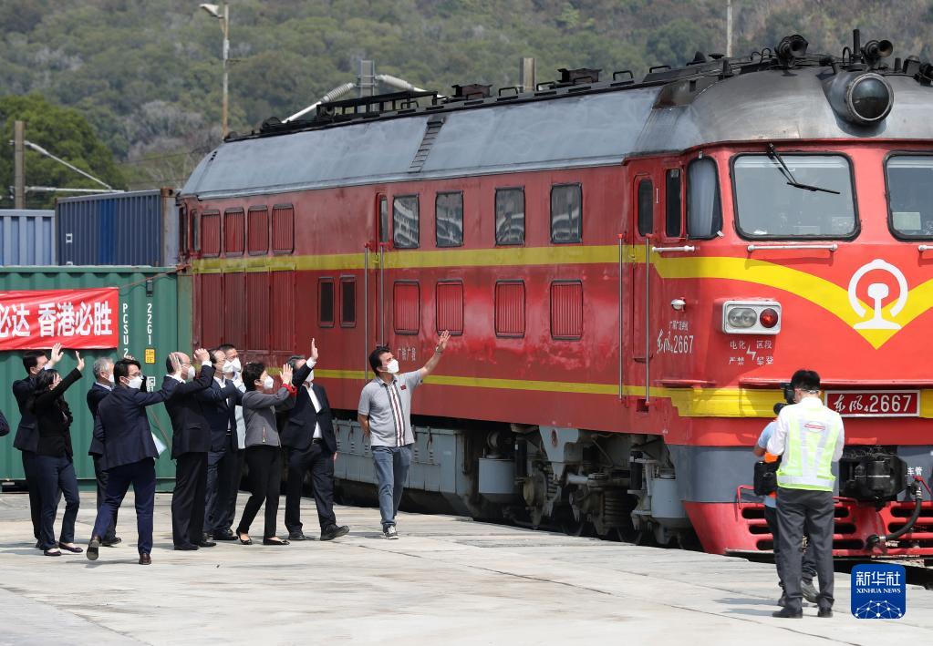 “中央援港 同心抗疫”鐵路援港班列抵達(dá)香港(3月2日攝)。