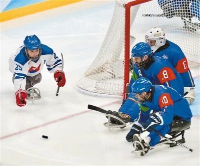 3月6日,北京冬殘奧會(huì)冰球小組賽在國(guó)家體育館繼續(xù)進(jìn)行。圖為意大利隊(duì)對(duì)陣斯洛伐克隊(duì)。本報(bào)記者 蔣雨師攝