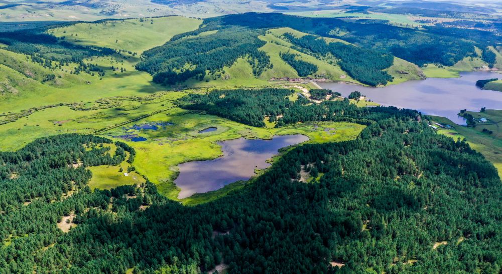 ↑這是內蒙古呼倫貝爾莫和爾圖林場景色(無人機照片,2021年7月28日攝)。