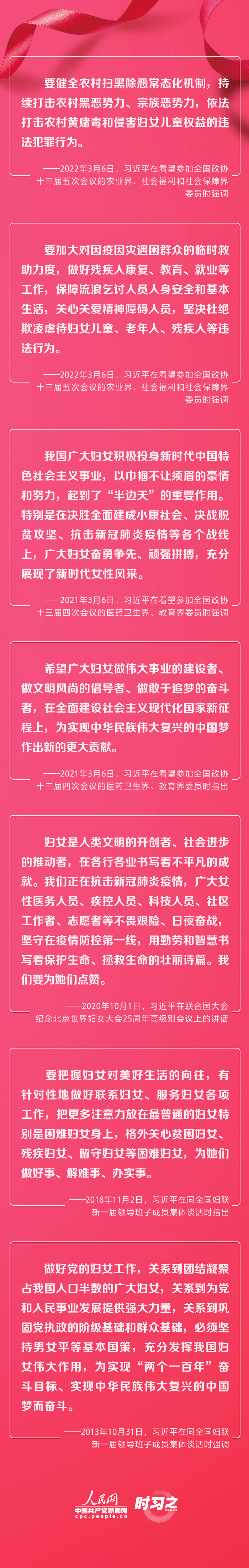 習近平曾在多個場合強調保障婦女權益,表達對廣大婦女的親切關懷和高度贊揚,殷殷關懷凝聚巾幗之力。