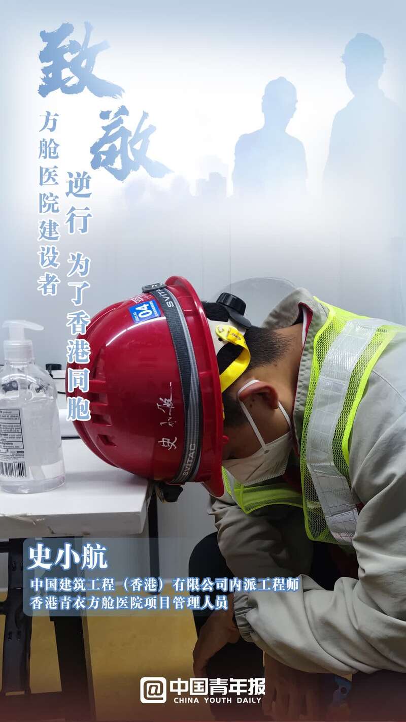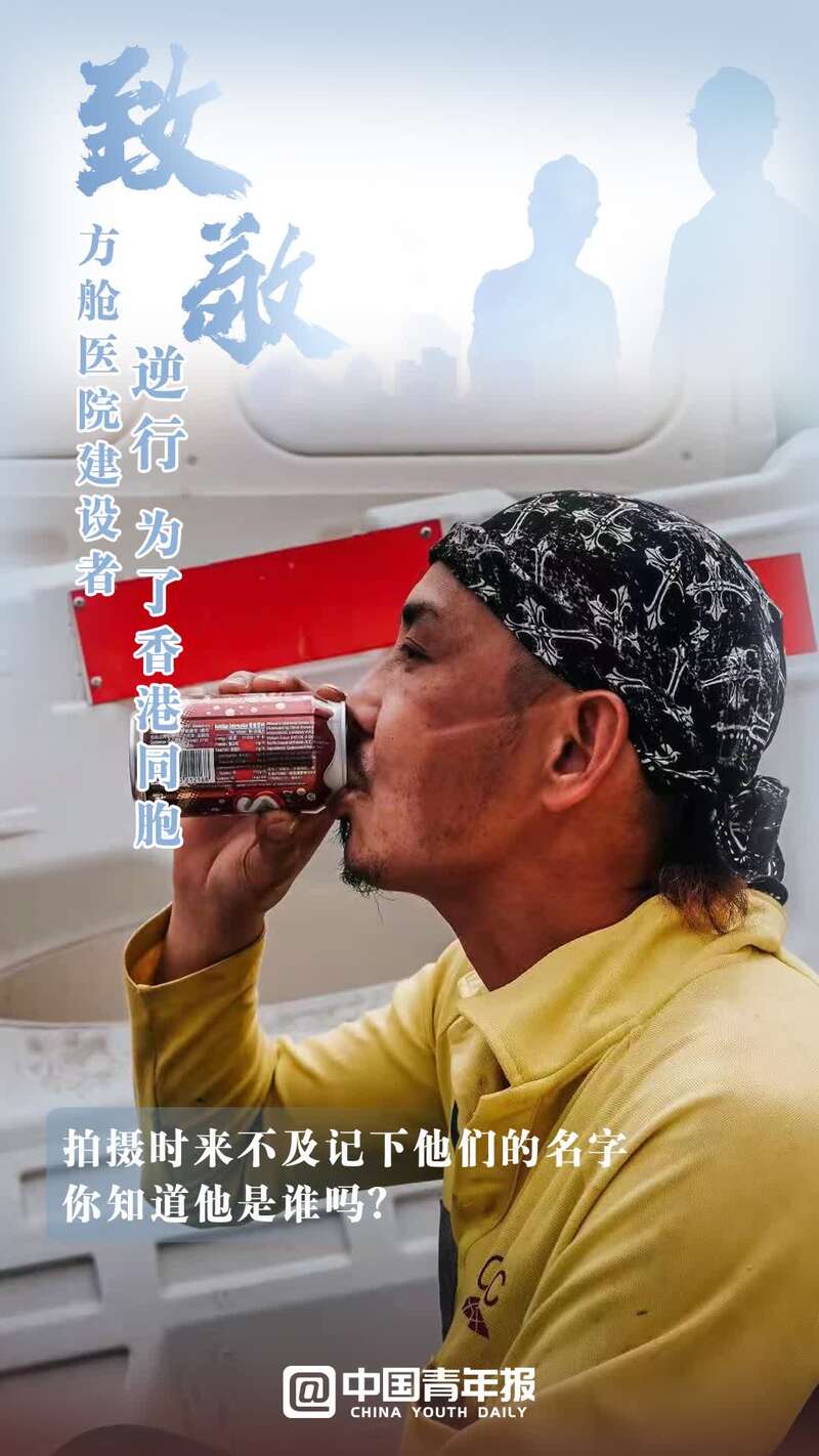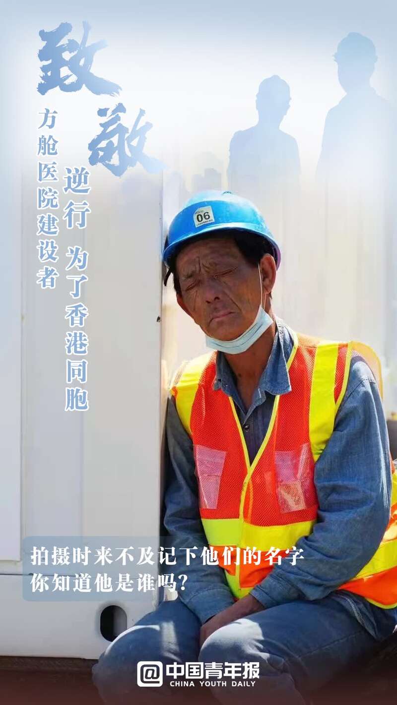 中國青年報客戶端北京3月9日電(中青報·中青網記者 寧迪 金卓 制圖:馬群 拍攝:孟曉白)日曬雨淋間,戴著口罩的臉,捂成了兩種顏色;雙耳后側,口罩勒痕反復摩擦,出血后留下了結痂;站在戶外,手上捧著盒飯,眼睛望向的卻是工地的進度;任何一處有支撐的物體,都能成為他們累極了的依靠。這群人中,有內地員工,也有香港員工,更有00后……面臨香港不斷攀升的新冠確診人數,他們甚至來不及與家人告別,就奔赴工地,披星戴月趕建出一座座中央援港方艙醫院。在這里,建設者只有一個共同的目標——搶救生命,建設希望。致敬,辛苦!