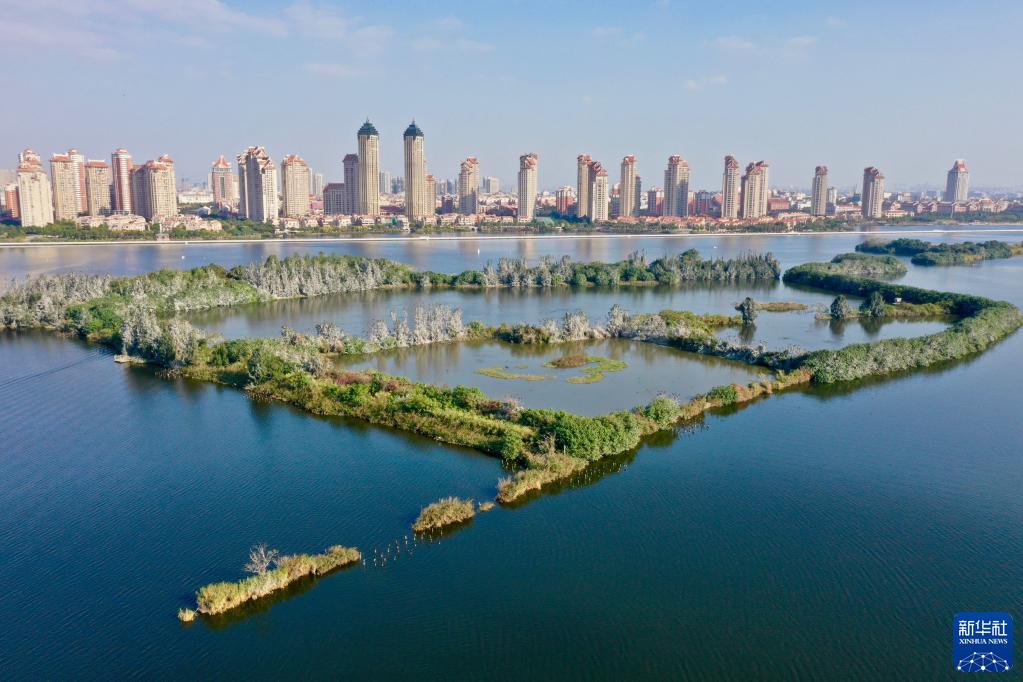 廈門市集美區(qū)城市濕地景觀(2021年12月8日攝,無(wú)人機(jī)照片)。(新華社記者姜克紅攝)