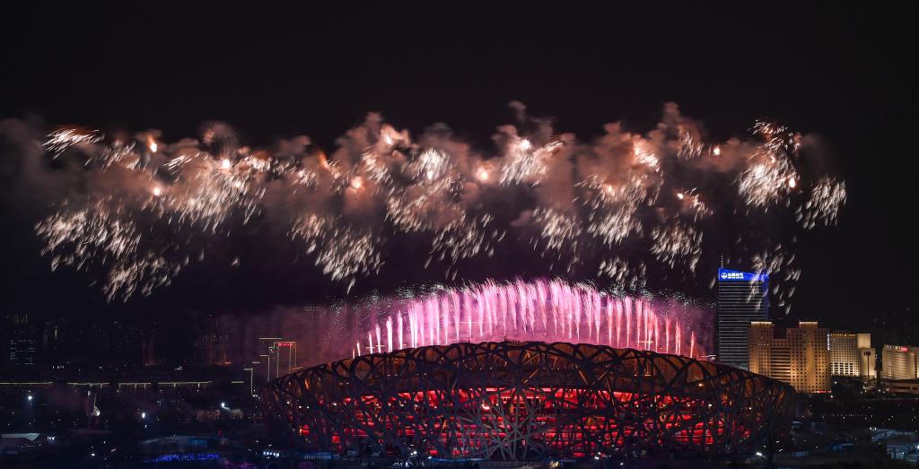 3月13日晚,北京2022年冬殘奧會閉幕式在北京國家體育場舉行。這是焰火表演。新華社記者 夏一方 攝