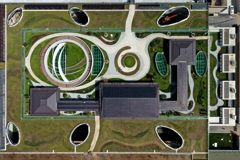 “變電站主體配合三面起坡的設計,將公園地形和變電站融合在一起,站頂打造開放式花園廣場,周邊綠植遍布,形成錯落有致、層次分明的景觀結構。”國網雄安新區供電公司規劃設計中心工作人員張海濤介紹。