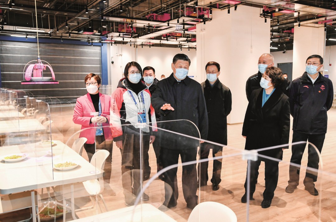 2022年1月4日,中共中央總書記、國家主席、中央軍委主席習近平在北京考察2022年冬奧會、冬殘奧會籌辦備賽工作。圖為1月4日上午,習近平在北京冬奧會、冬殘奧會主媒體中心智慧餐廳,察看智能餐飲設備運行情況。圖/新華社記者 謝環馳 攝