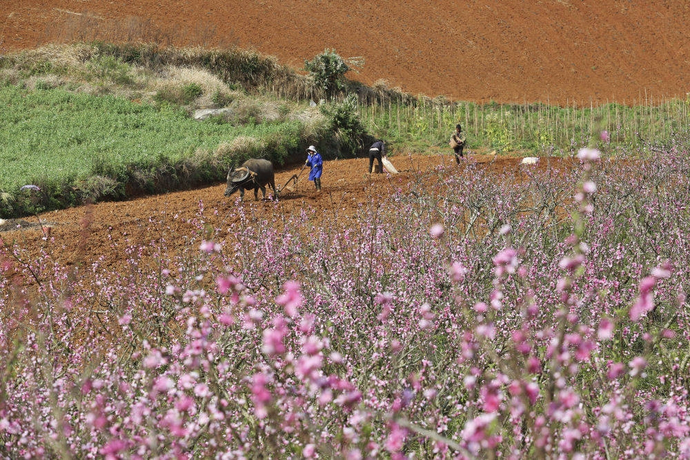 ↑ 在云南省麗江市玉龍縣黃山鎮,村民在地里勞作。