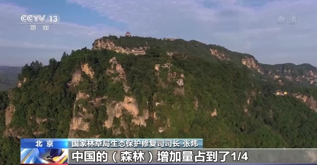 國家林草局生態保護修復司司長 張煒:2019年,美國航天衛星拍攝的結果,就是在近20年期間,地球在逐步變綠,中國的(森林)增加量占到了1/4,位居世界第一。