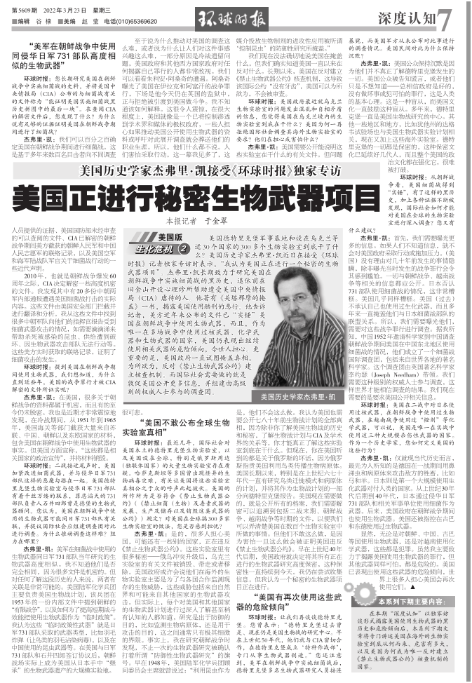 獨家!美歷史學家接受《環球時報》專訪:美國正進行秘密生物武器項目