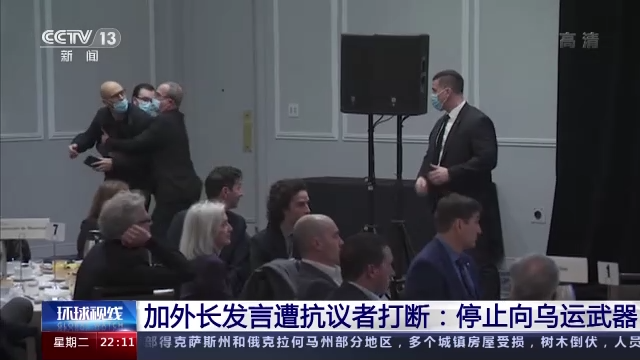 21日,加拿大外長梅拉妮·喬利在蒙特利爾國際關(guān)系理事會上就烏克蘭局勢發(fā)表講話時,被現(xiàn)場一名抗議者打斷——抗議者強(qiáng)烈反對加拿大向?yàn)蹩颂m提供武器,指責(zé)這只會使當(dāng)前的局勢進(jìn)一步升級。這名抗議者隨后被安保人員阻攔并強(qiáng)行帶離現(xiàn)場。