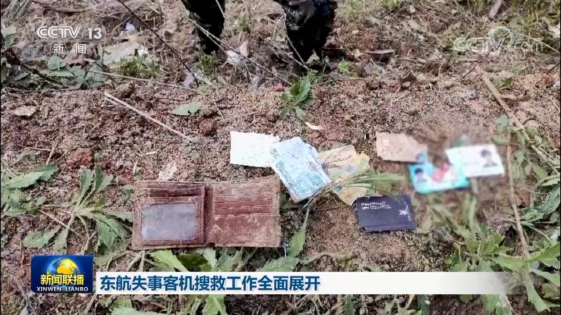 在墜機搜救核心區域,救援人員發現了飛機殘骸及失聯人員的錢包、身份證、銀行卡等隨身物品,截至目前暫未發現生命跡象。