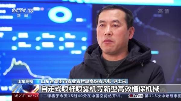 山東省高密市農業(yè)農村局高級農藝師 尹士采:我們利用植保無人機、自走式噴桿噴霧機等新型高效植保機械,開展小麥病蟲草害統(tǒng)防統(tǒng)治,同時加強對農戶、家庭農場的指導服務。