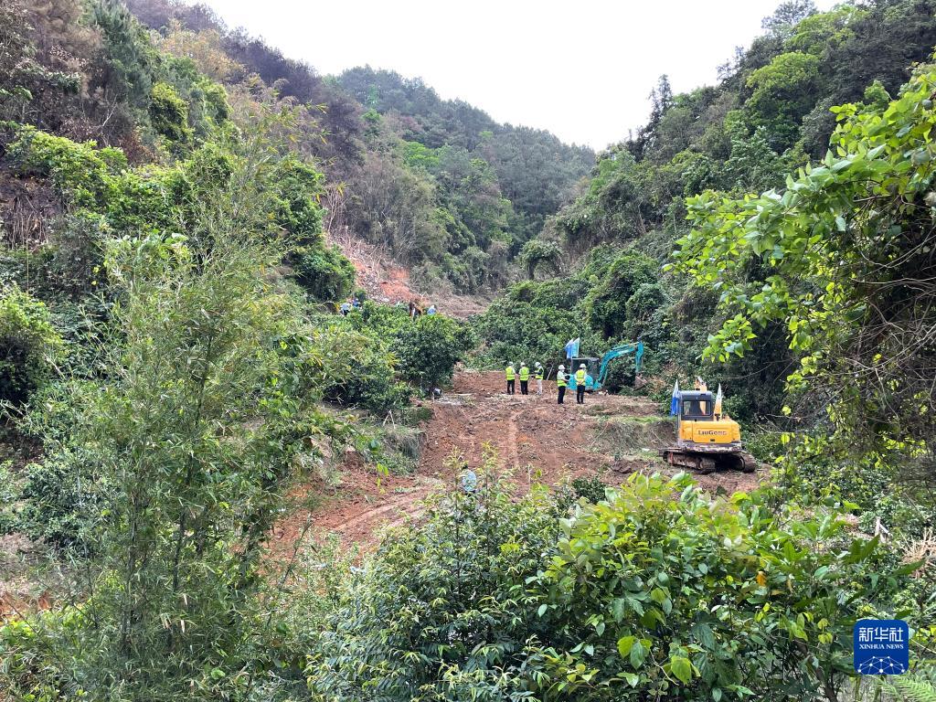 3月22日,在廣西藤縣埌南鎮莫埌村,挖掘機開挖進入東航MU5735客機墜毀事故現場的通道,為后續工作鋪平道路(手機照片)。新華社記者 周華 攝