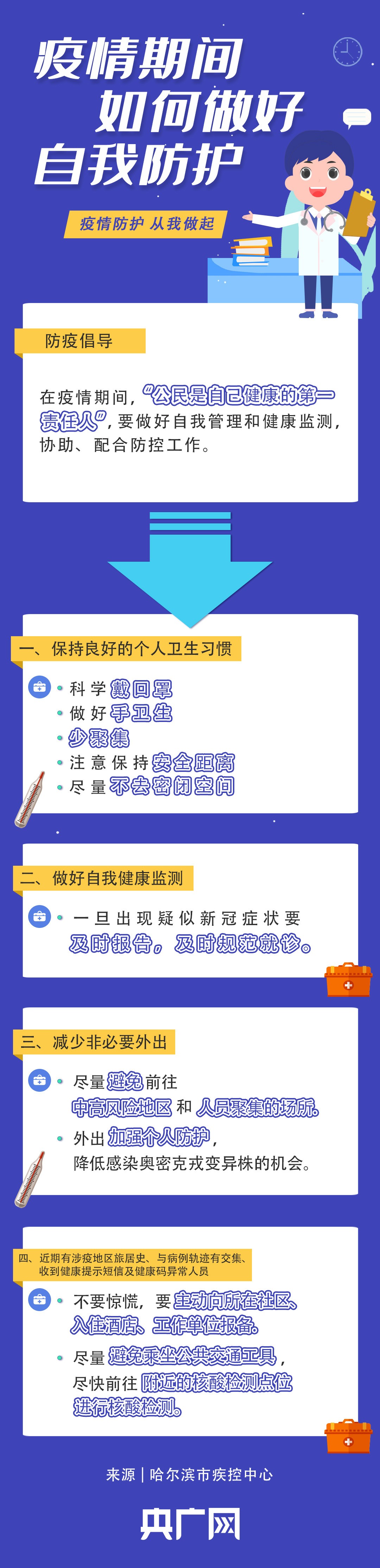 央廣網(wǎng)哈爾濱3月25日消息(記者馬俊瑋 實(shí)習(xí)生鄒皓楠)新冠疫情期間,每位公民都是自己健康的第一責(zé)任人。那么,如何做好自我防護(hù)、自我管理、健康監(jiān)測(cè)……一張圖教會(huì)你。