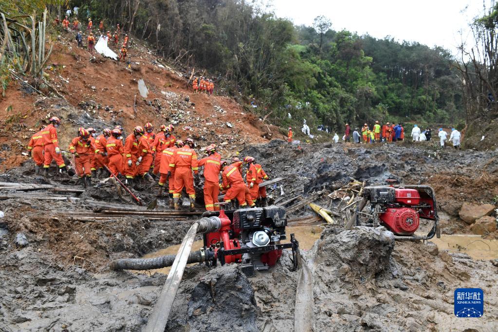 3月24日,搜救人員在事故核心現場繼續進行搜索工作。