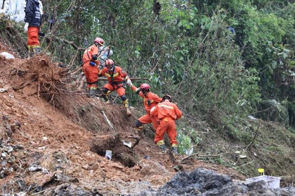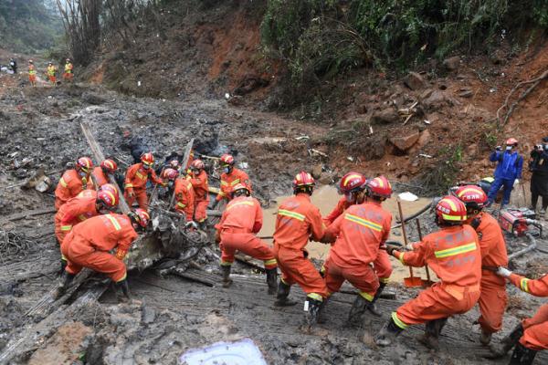 3月24日,搜救人員在事故核心現(xiàn)場(chǎng)繼續(xù)進(jìn)行搜索工作。新華社記者 陸波岸 攝