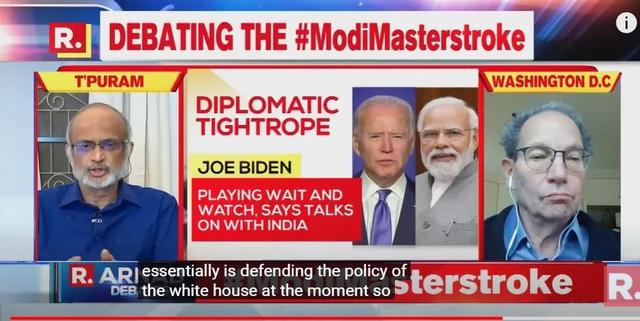 在節目中,庫普坎批評印度“不能再做‘騎墻派’”,遭到阿納布回懟“不要教育我們”,并怒斥“美國沒有資格假裝是民主和人權的捍衛者”。當庫普坎說到“你看到西方國家已經團結起來對抗俄羅斯了 ,三分之二的國家都在反對俄羅斯”時,印度主持人阿納布搖頭連說“不是的”,已經忍不住想要插話進去,但沒能成功。在庫普坎結束發言后,阿納布首先表示:“我希望你能讓我體面地把話說完。”“首先,恕我直言,庫普坎教授,你的發言在道德立場上站不住腳!你們美國人沒有資格,美國沒有資格假裝是民主和人權的捍衛者。你們才是暴行的罪魁禍首。”主持人阿納布大聲呵斥。他隨即提到當初奧巴馬在利比亞內戰時伙同盟友攪亂局勢,使內戰延續了十年,還列舉了美國對多個國家發動戰爭,包括伊拉克、敘利亞、也門、索馬里、尼日爾,并用無人機殺害了上千人。“你說到印度,我們是一個大國,我們不是你們的‘衛星國’,所以不要教育我們該做什么。我們會管好自己的。”主持人向庫普坎說道。3月21日,該節目就美方發出的“印度站在歷史錯誤一邊”言論展開了辯論。庫普坎教授再次挑戰了印度媒體的神經。在這次的節目里,主持人阿納布認為在烏克蘭問題上,印度的對外政策是獨立和中立的。他說一些關鍵國家面對這一的危機時,保持中立是必要的。庫普坎教授在回應中聲稱,印度在選邊站(India is choosing sides)。并質問印方,當烏克蘭深陷危機時,印度在哪?印度要決定他們是站在歷史的正確一邊還是錯誤一邊?印度為何不站出來“譴責”俄羅斯?這時主持人阿納布先問了一個問題:“美國為什么不對中國說同樣的話?” 隨后把問題拋給了最左邊的一名印度嘉賓。