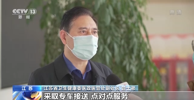 江蘇省衛生健康委醫政醫管處副處長 管士弟:對急危重癥患者,要求醫療機構做到第一時間救治。同時在本土疫情發生期間,特別是對隔離點一些人員有醫療服務需求的采取專車接送、點對點服務,確保閉環管理。