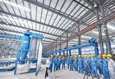 黨員志愿者走進浙江省湖州市棟梁新材有限公司車間,在企業(yè)員工休息時為他們宣講紅色革命故事。新華社記者 徐 昱攝