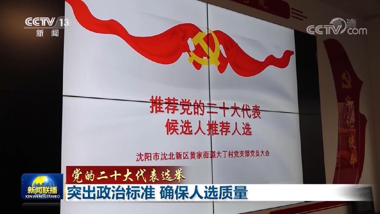 央視網消息(新聞聯播):各地認真推進黨的二十大代表推薦選舉工作,充分發揮黨組織領導和把關作用,確保高標準、高質量選出黨的二十大代表。