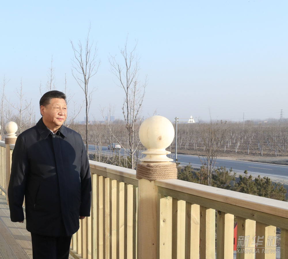 2019年1月16日至18日,習近平在京津冀考察,主持召開京津冀協同發展座談會并發表重要講話。這是1月16日下午,在雄安新區“千年秀林”大清河片林一區造林區域,習近平登上秀林驛站二層平臺遠眺林區全貌。