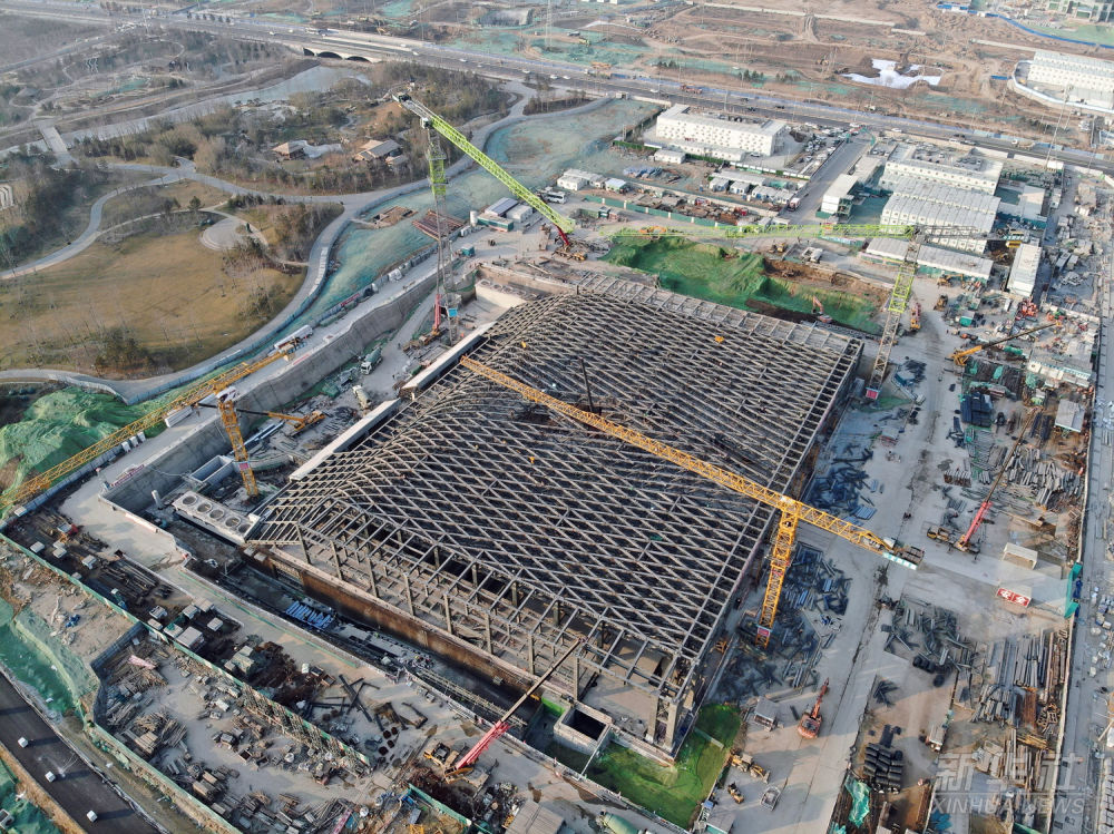 這是建設中的雄安新區城市計算(超算云)中心項目(無人機照片,2022年1月5日攝)。該項目是雄安數字孿生城市“之腦”“之眼”“之芯”,將為整個數字孿生城市的大數據、區塊鏈、物聯網、AI、VR/AR提供網絡、計算、存儲服務。